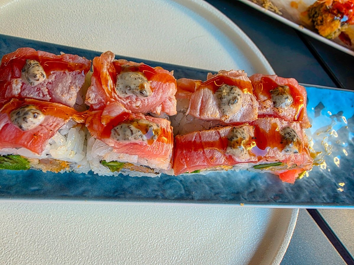 Malgré un décor qui se veut immersif, mon expérience culinaire a été exceptionnellement mauvaise. La qualité des produits est médiocre, notamment le poisson des sushis, et la plupart des plats ont le même goût à cause d’une sauce sucrée omniprésente.