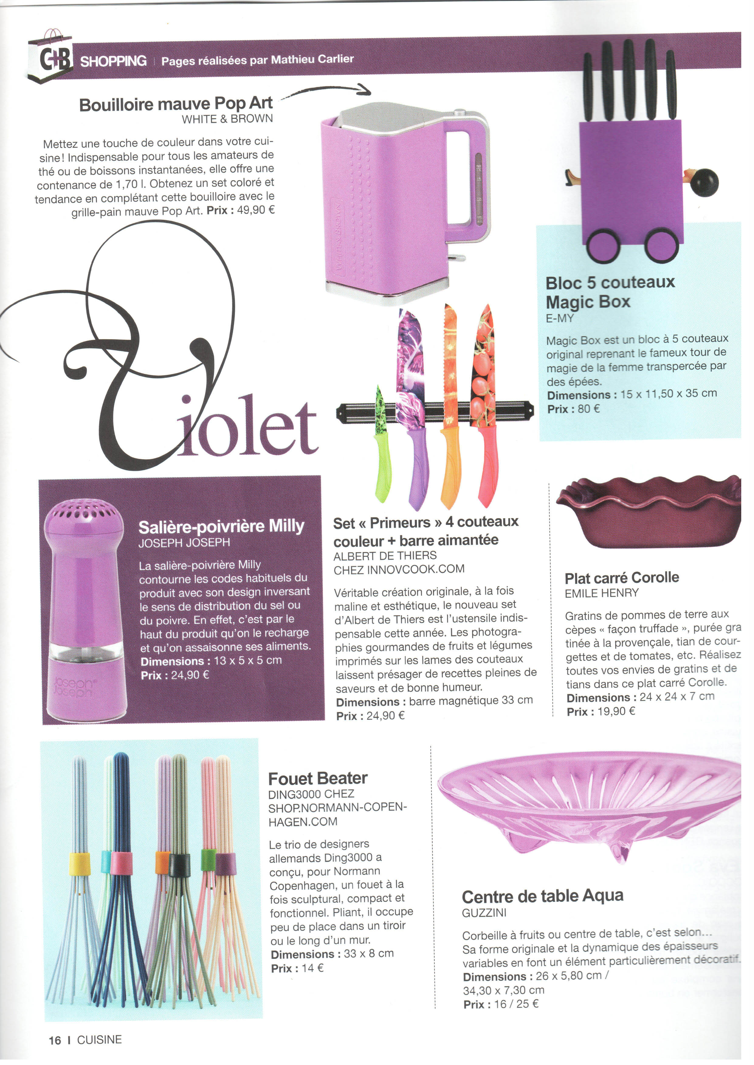 Enfin, pour ma troisième chronique déco pour le magazine Cuisine Tendance + Bains j’ai choisi de réaliser des thèmes shopping par couleur : rouge, vert, violet et orange. Résultat : quatre pages colorées et furieusement tendances !